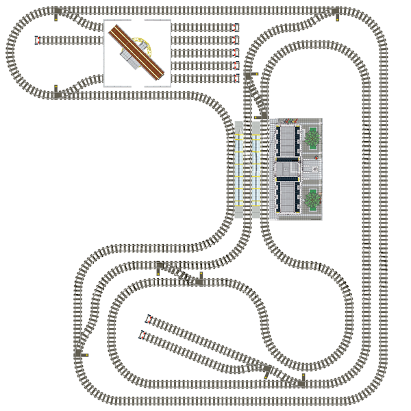 Weichen und Dreh-Schiebebühne werden elektrisch über Servos und Motoren gesteuert. Alle Gleise sollen mit Echtstein-Schotter eingeschottet werden. Die Landschaft wird mit Lego-Bausteinen und natürlichen Baumaterialien erstellt. Mehr ...